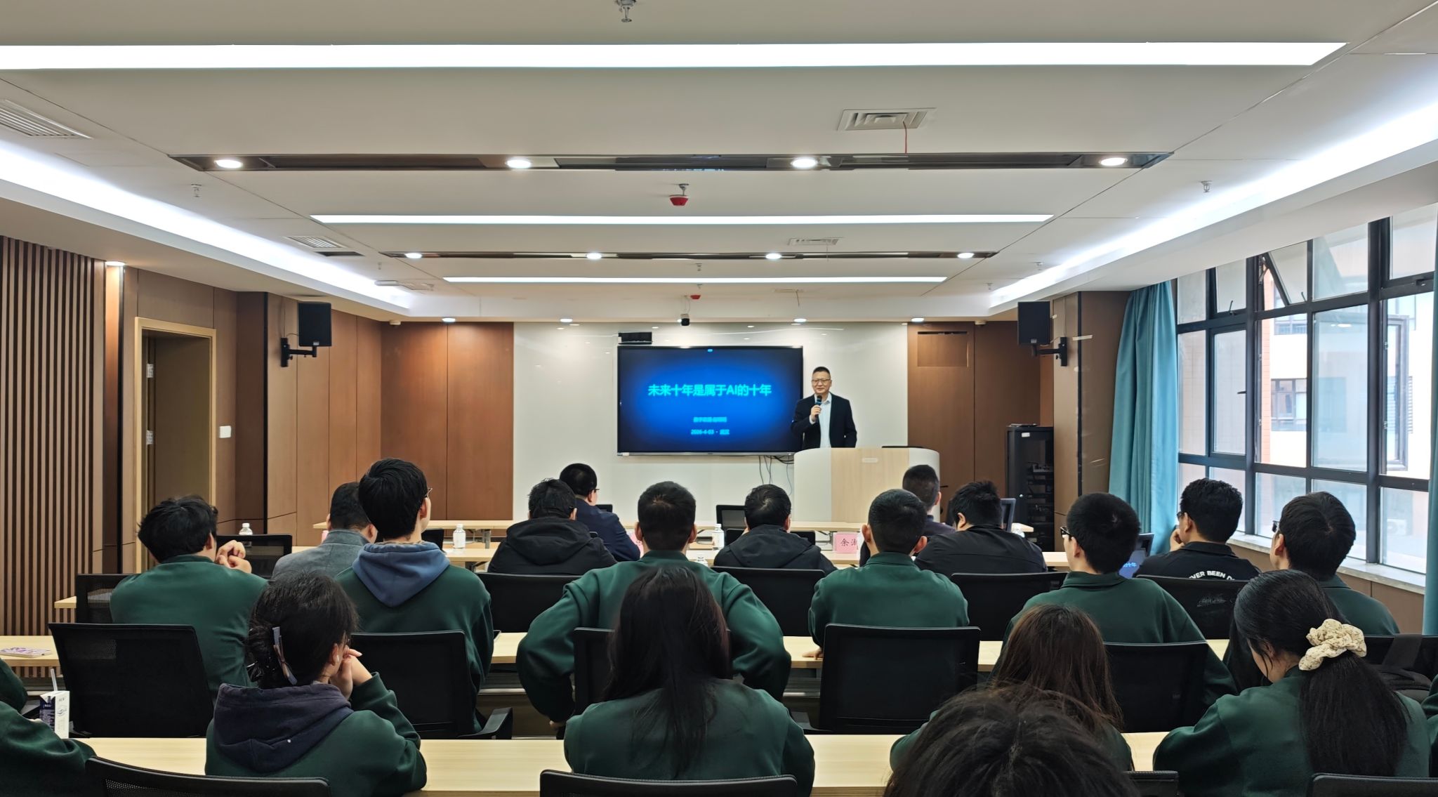 在分析AI时代特点与发展趋势时,赵明明表示,人工智能已从概念探索走向大规模应用落地,尤其在智慧城市、数字政务、智能决策等领域展现出巨大潜力。他特别强调个人要主动拥抱AI的重要性,鼓励同学们积极学习并使用AI工具辅助学习、提升实践能力、激发创新思维。他形象地比喻道:“今年的OpenClaw打开了AI的潘多拉魔盒。”