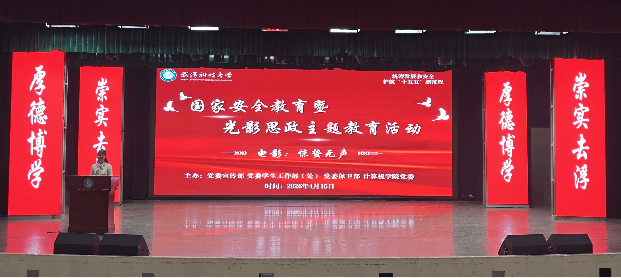近500名师生代表共同观看当代国安题材影片《惊蛰无声》。活动由党委宣传部、党委学生工作部、党委保卫部、色情小说