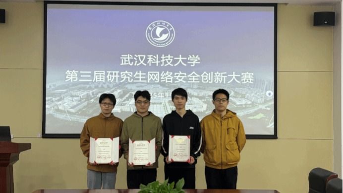 广泛征集作品,吸引了众多研究生团队踊跃参与。经过前期严格的线上评审,共有3支优秀队伍脱颖而出,成功晋级决赛。决赛答辩现场气氛紧张而热烈。参赛选手通过清晰严谨的技术讲解、可视化的攻防演示,生动呈现了密码算法解析、攻击链分析、漏洞利用与防护策略等复杂内容。现场实时的渗透测试、告警日志展示及系统联动防护效果,引发了评委与观众的积极提问和高度关注。专家评委从创新性、技术难度、应用价值、安全性与规范性等多个维度对作品进行综合评审,在充分肯定同学们对前沿安全技术的敏锐洞察和对真实场景问题的深入思考的同时,也从系统稳定性、工程落地性及合规要求等方面提出了宝贵建议。经过激烈角逐,大赛最终评选出一、二、三等奖。颁奖环节中,获奖队伍与评委老师代表朱郭诚合影留念,共同记录下这一富有成果的精彩时刻。
